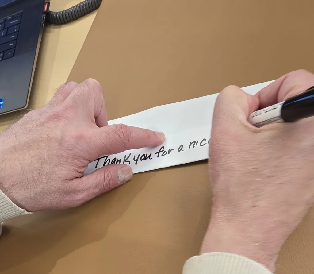 9. When you are done, unfold the paper. Your note will be in order from top to bottom, and the writing will be evenly spaced.